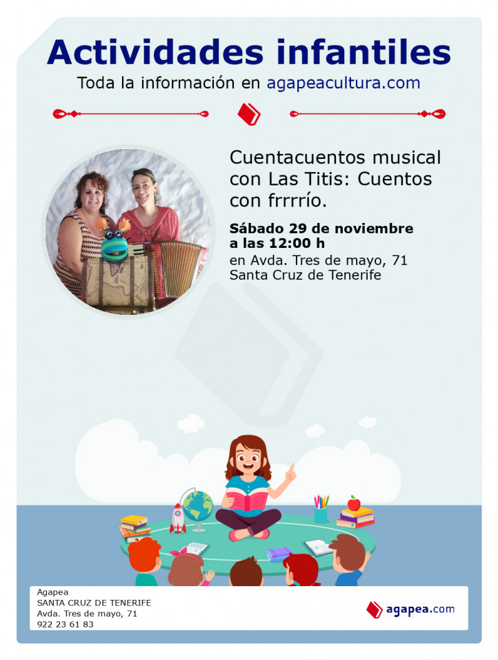 Cuentacuentos musical con Las Titis: Cuentos con frrrrío. En Agapea Santa Cruz de Tenerife.