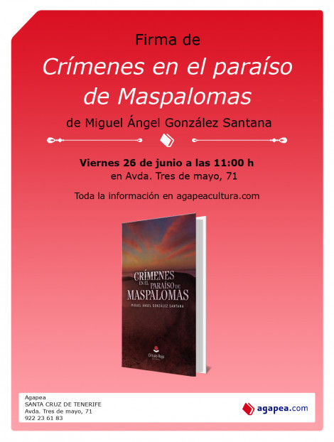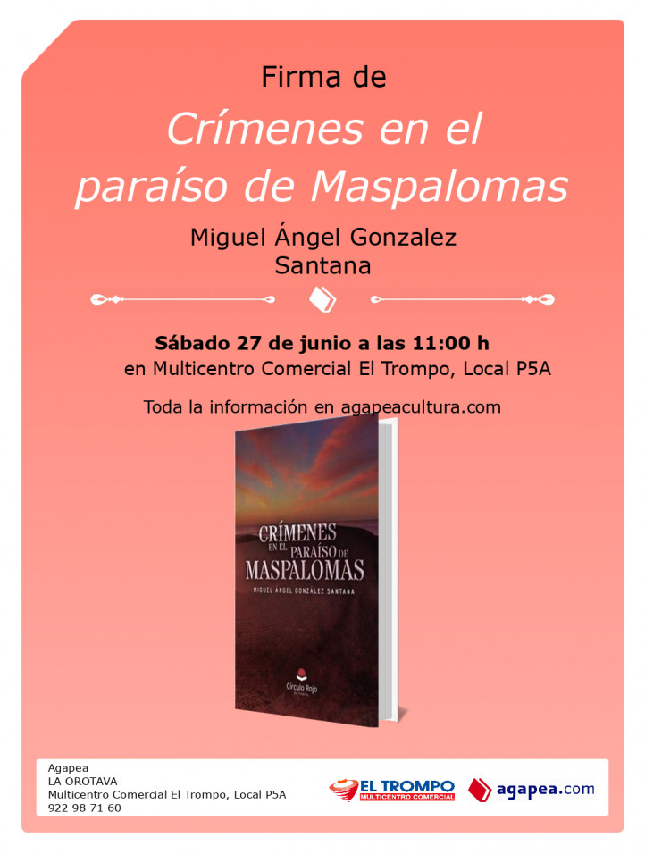 Firma de Crímenes en el paraíso de Maspalomas, de Miguel Ángel Gonzalez Santana. En Agapea La Orotava.