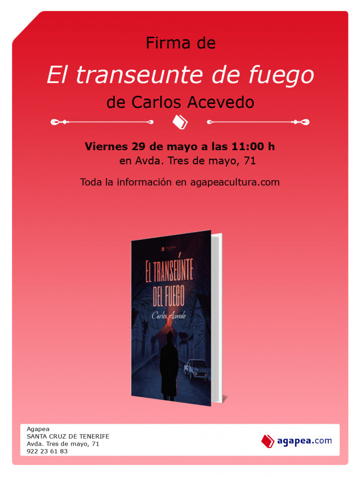 Firma de El transeunte de fuego, de Carlos Acevedo. En Agapea Santa Cruz de Tenerife.