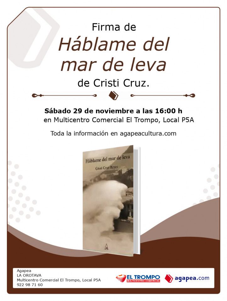 Firma de Háblame del mar de leva, de Cristi Cruz. En Agapea La Orotava.