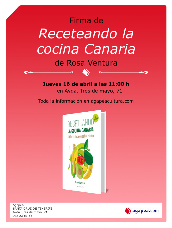 Firma de Receteando la cocina Canaria, de Rosa Ventura. En Agapea Santa Cruz de Tenerife.