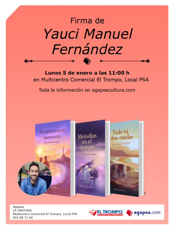 Firma de Todo va sobre ruedas, con Yauci Manuel Fernández. En Agapea La Orotava.
