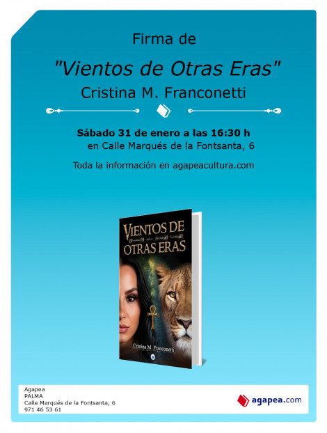 Firma de "Vientos de otras eras", de Cristina M. Franconetti, en Agapea Palma