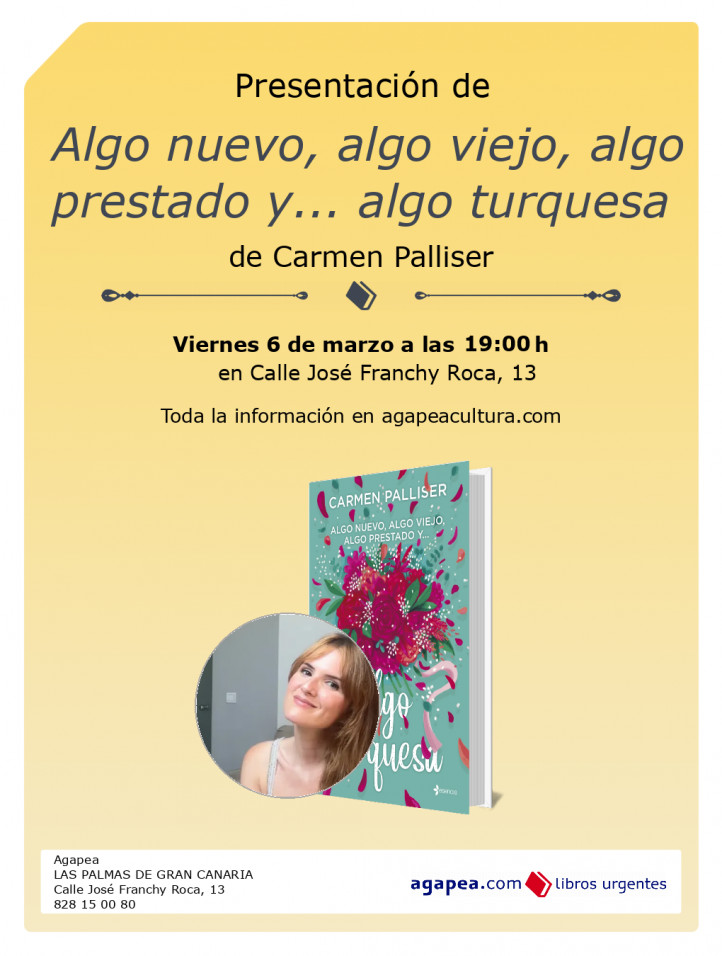 Presentación de Algo nuevo, algo viejo, algo prestado y... algo turquesa, de Carmen Palliser. En Agapea de Las Palmas de Gran Canaria
