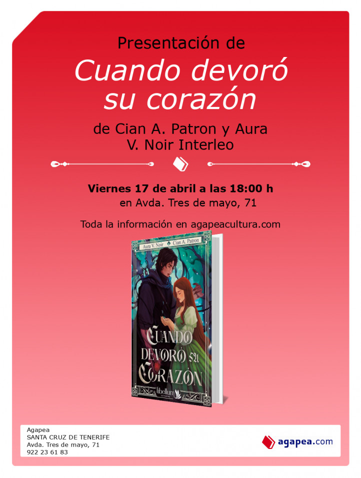 Presentación de Cuando devoró su corazón, de Cian A. Patron y Aura V. Noir Interleo. En Agapea Santa Cruz de Tenerife.