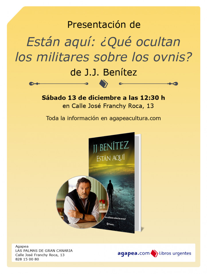 Presentación de Están aquí: ¿Qué ocultan los militares sobre los ovnis?, de J.J. Benítez en Agapea de Las Palmas de Gran Canaria