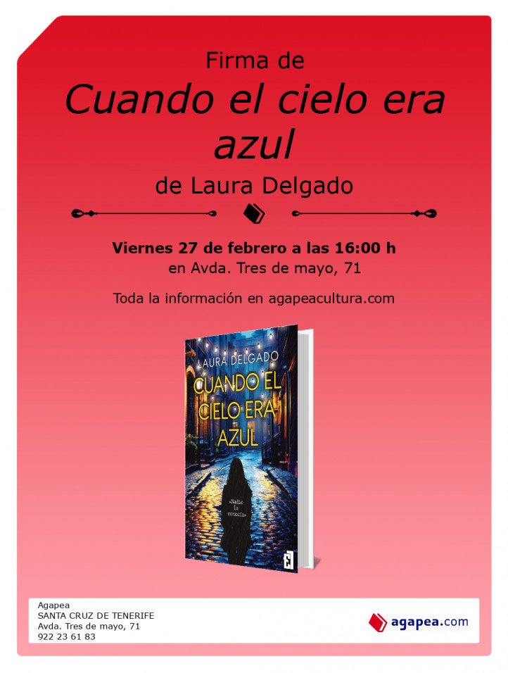 Vuelve Laura Delgado para firmar Cuando el cielo era azul. En Agapea Santa Cruz de Tenerife.